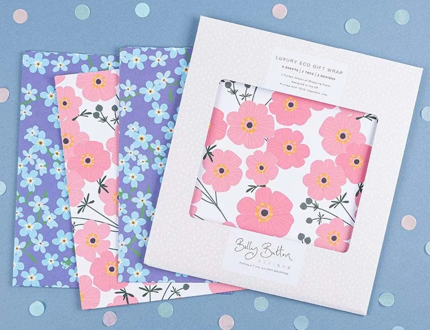 4 sheets of 2 designs. Wrap sheet size 696x500mm. 100% recyclable and sustainably made in the UK.