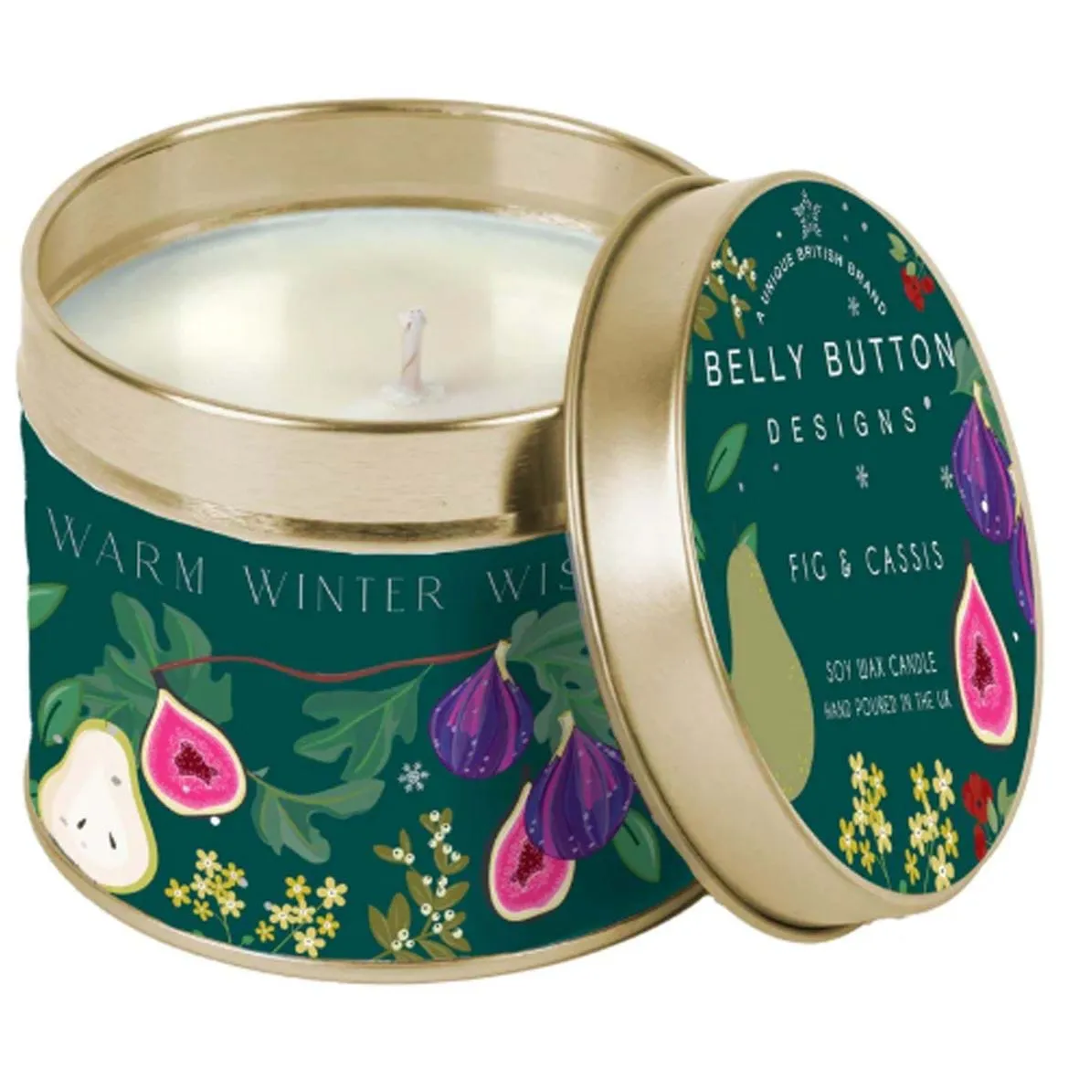 Fig & Cassis Soy Wax Candle. 100% Soy wax tin scented candle. Fragrance: Fig & Cassis Hand poured in the UK. 30+ hours burn time. 195g Recyclable Tin