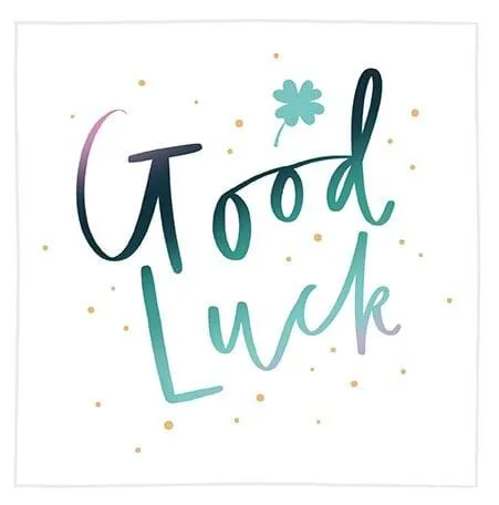 Good luck card with “Good Luck” in a colourful shimmer text. Made in the UK.