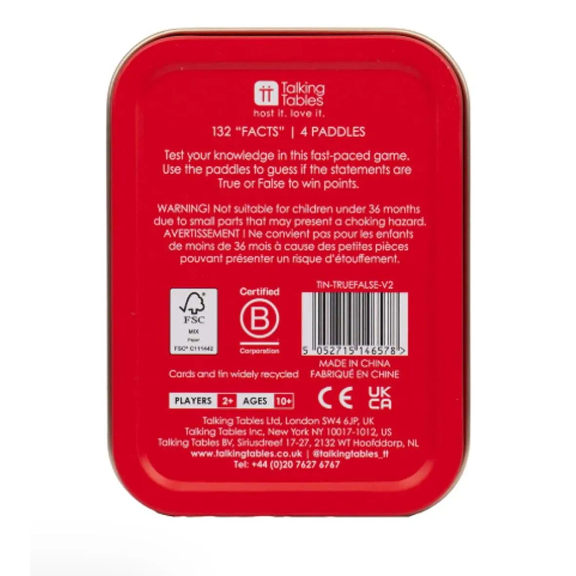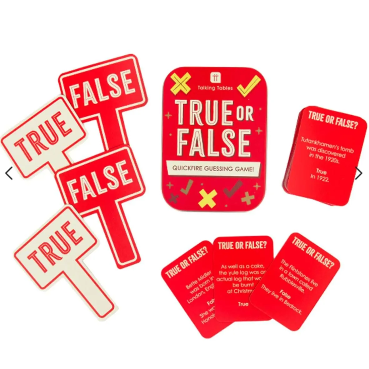 Return To ShopThere’s heaps of fun to be had testing your general knowledge with this fast-paced True or False game. Use the mini paddles to guess if statements like, ‘Lighters were invented before matches’ are true or false. Answer correctly and watch yourself climb the leader board. A game the whole family can enjoy, whether that’s at a big occasion like Christmas or just for some Friday night fun. Included: 130 statements 4 paddles
